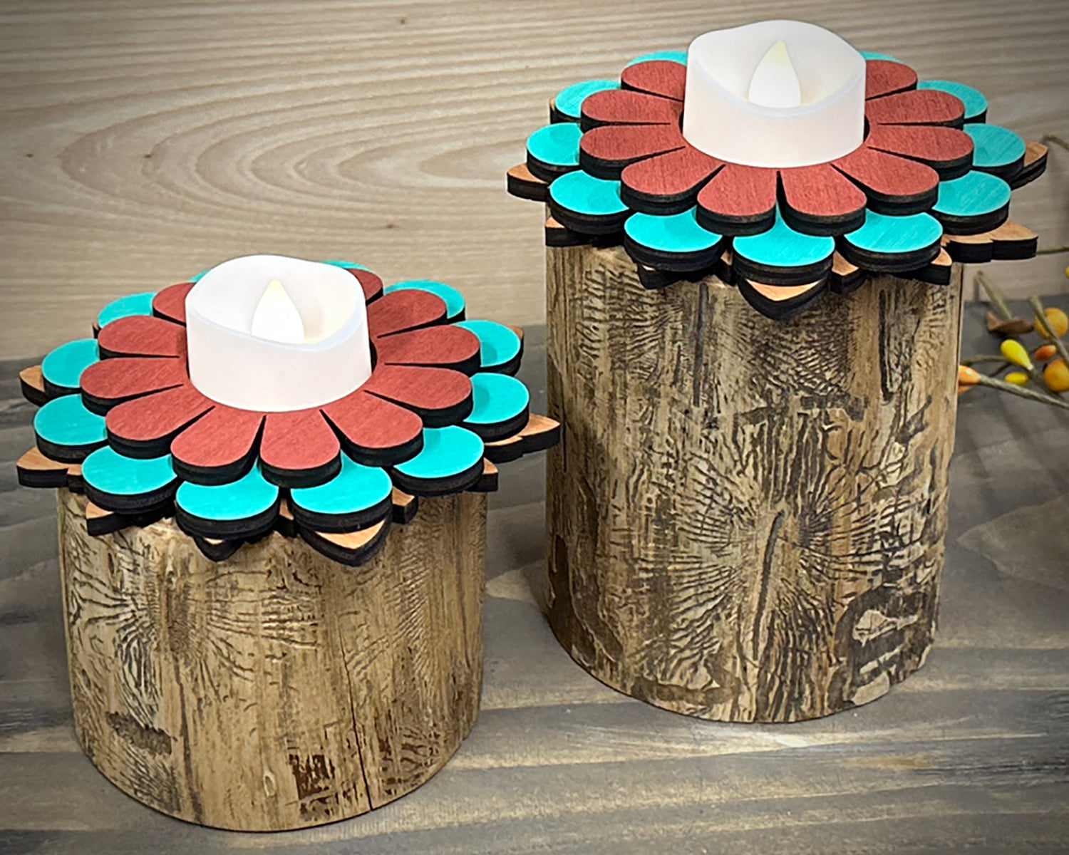 Check out these unique one of a kind candle holders with included LED candle.