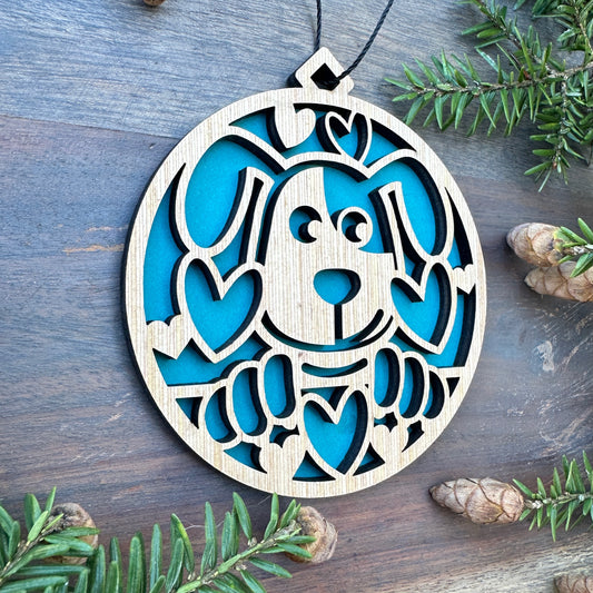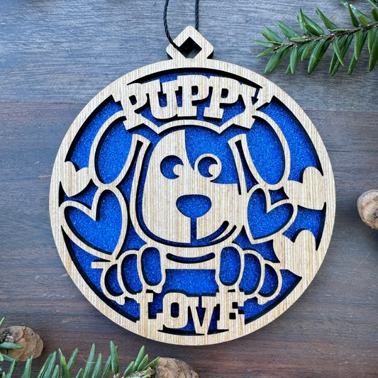 Puppy Love Wood Ornament - 7 Colors - 2 Sizes