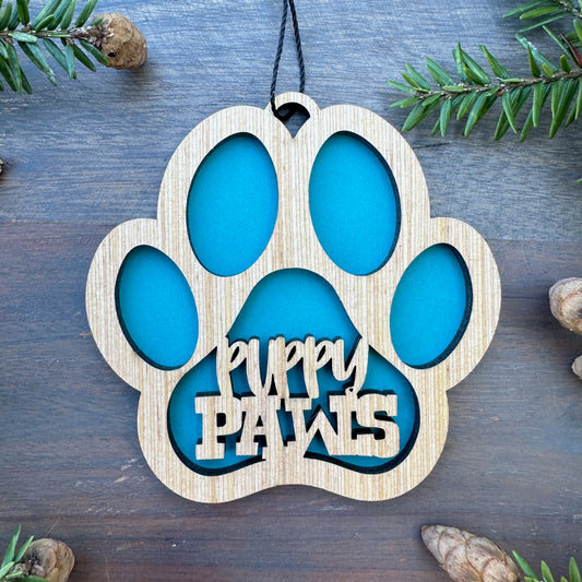 Puppy Paw Wood Ornament - 7 Colors - 2 Sizes