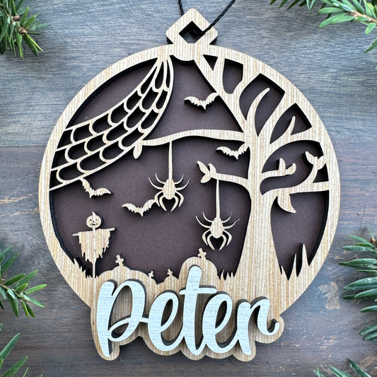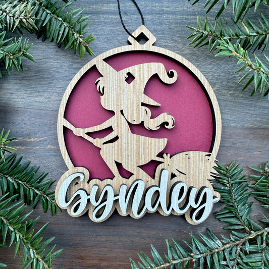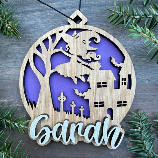 Personalized Halloween Witch Scene Wood Ornament with Name