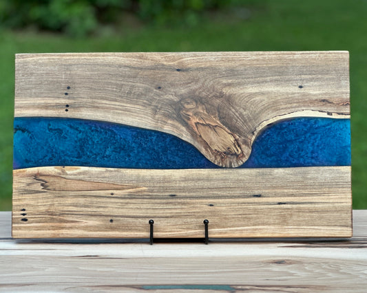 Spalted Maple Wood and Blue Epoxy Cutting Board