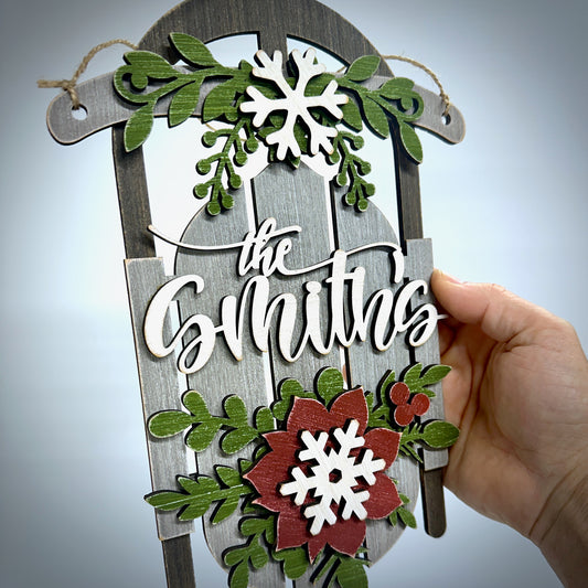 Personalized Rustic Wood Sled Christmas Decoration, Available in 2 sizes