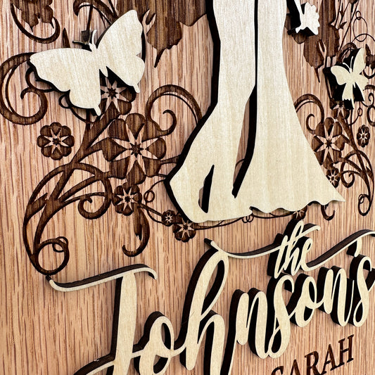 Personalized Floral Themed Engraved and Raised Cut Wedding Gift