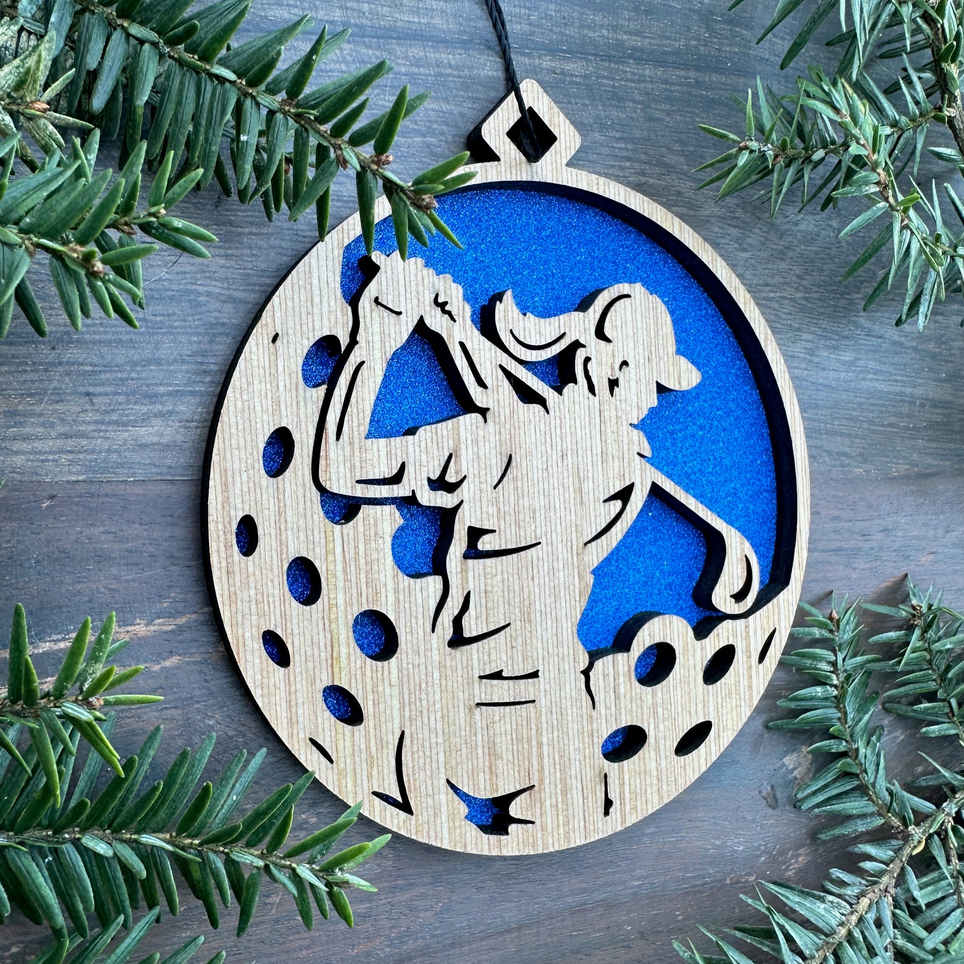 Make your Christmas or other holiday memorable with our laser cut wooden ornaments. Handcrafted with care from finished high quality 5mm wood with a colored 100# cardstock background. Black String Hanger included.