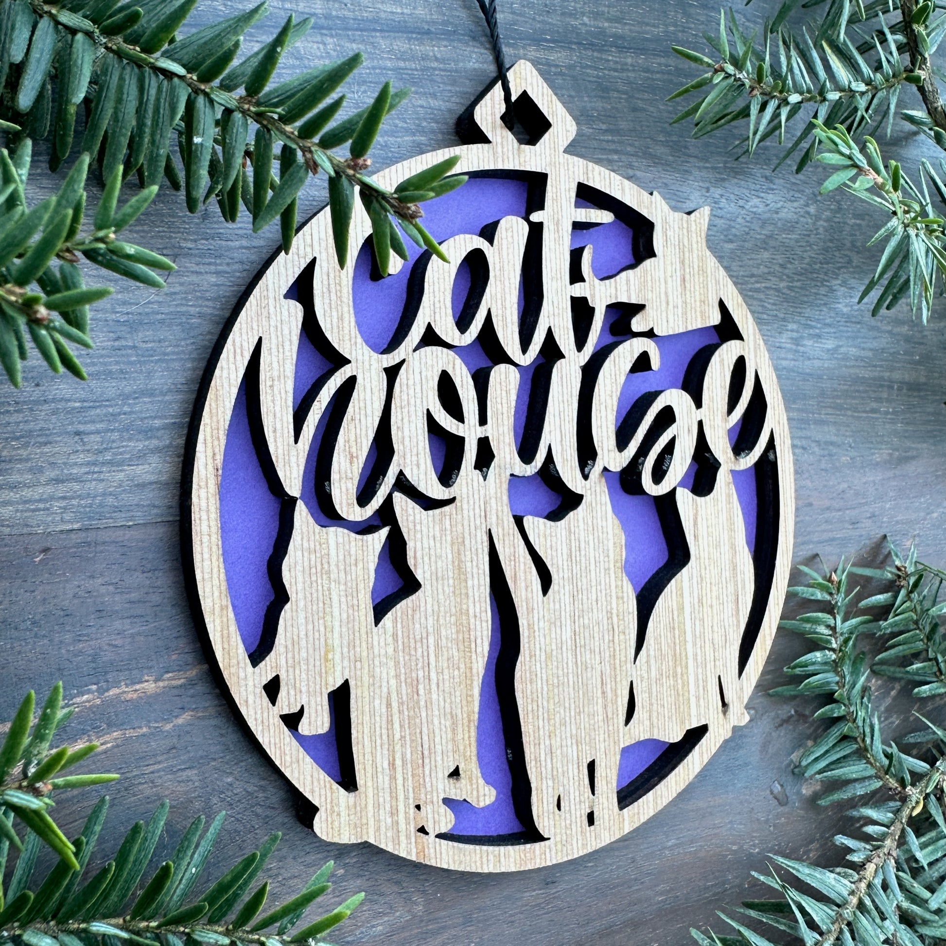 Make your Christmas or other holiday memorable with our laser cut wooden ornaments. Handcrafted with care from finished high quality 5mm wood with a colored 100# cardstock background. Black String Hanger included.