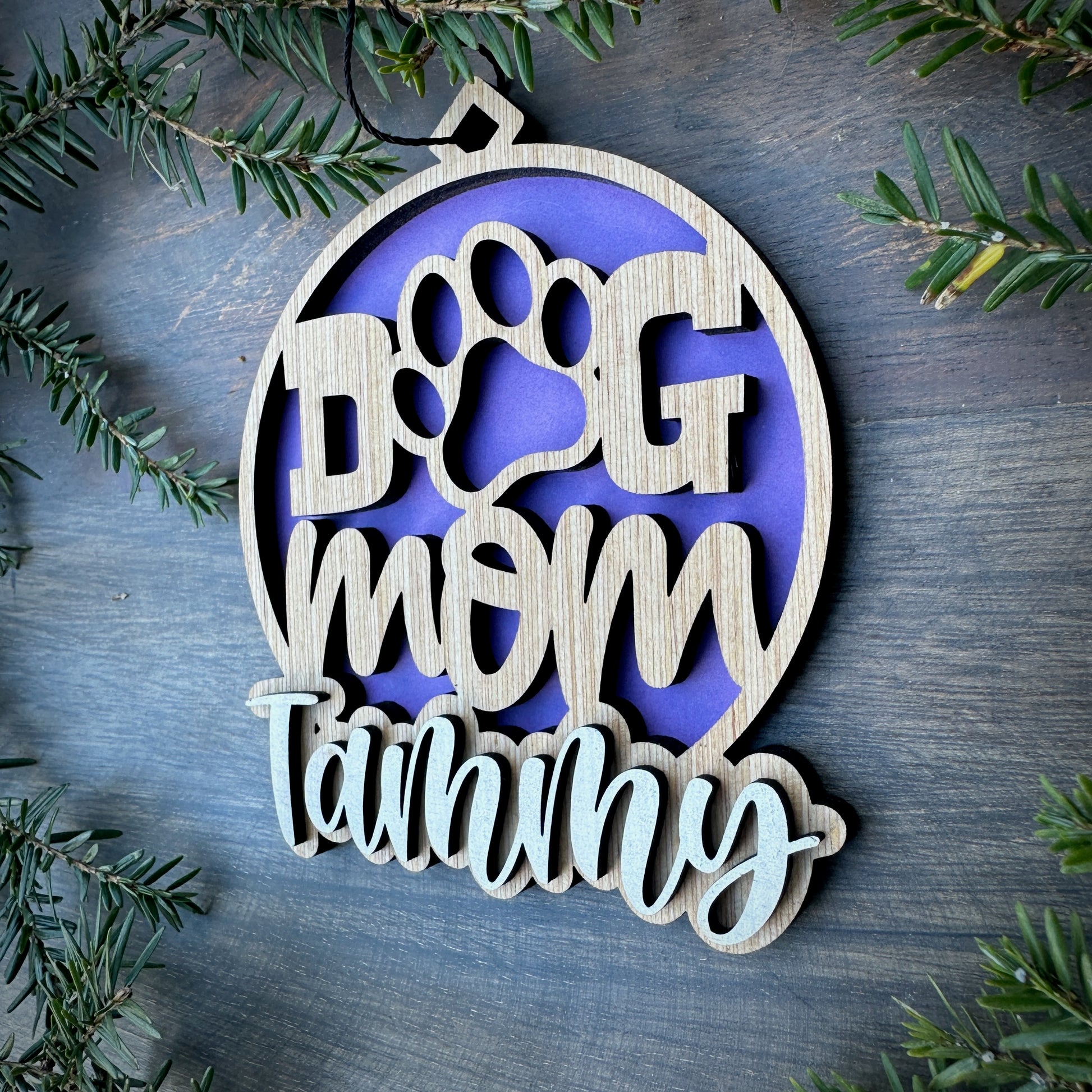 Personalized Dog Mom Wood Ornament with Name