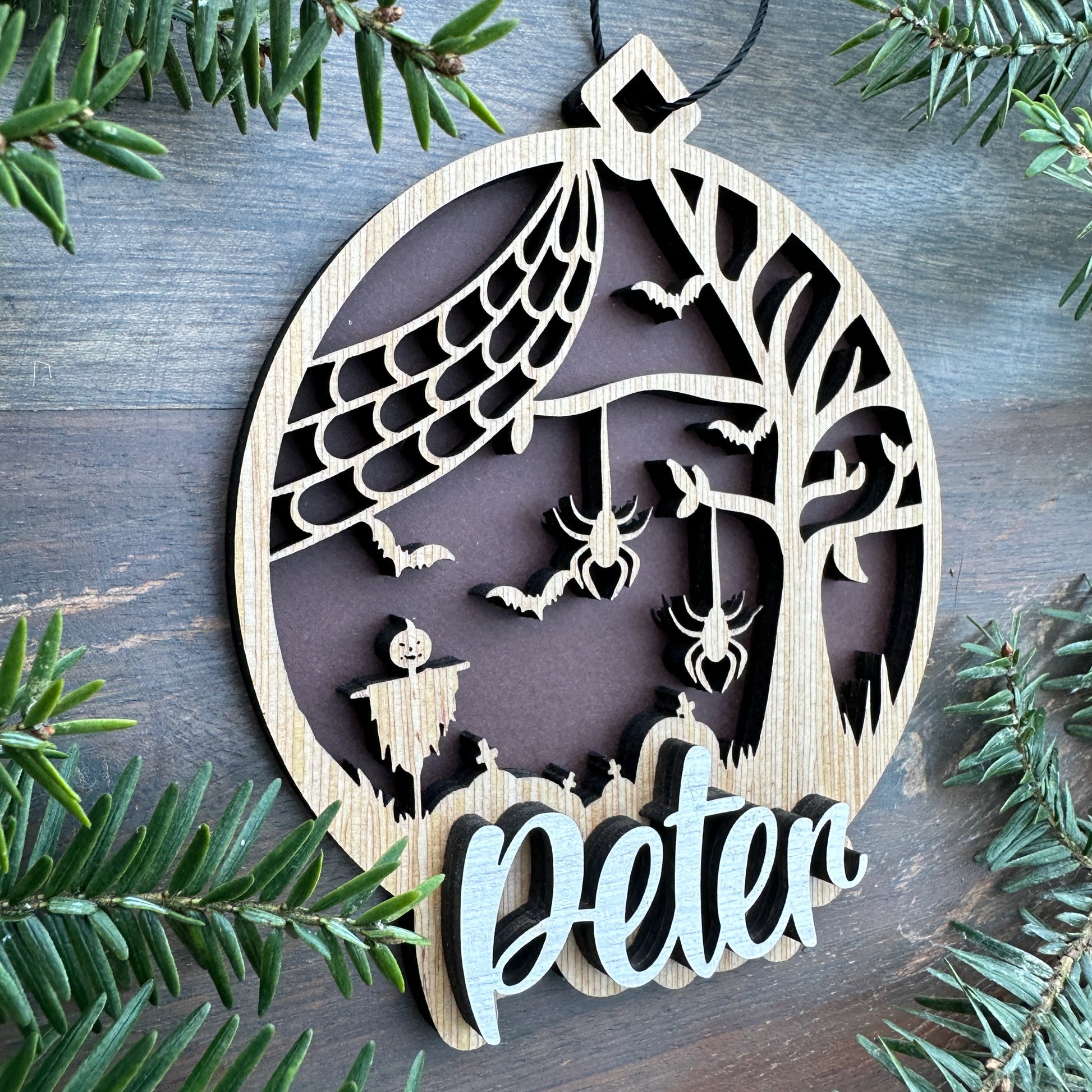 Personalized Halloween Spider Wood Ornament with Name