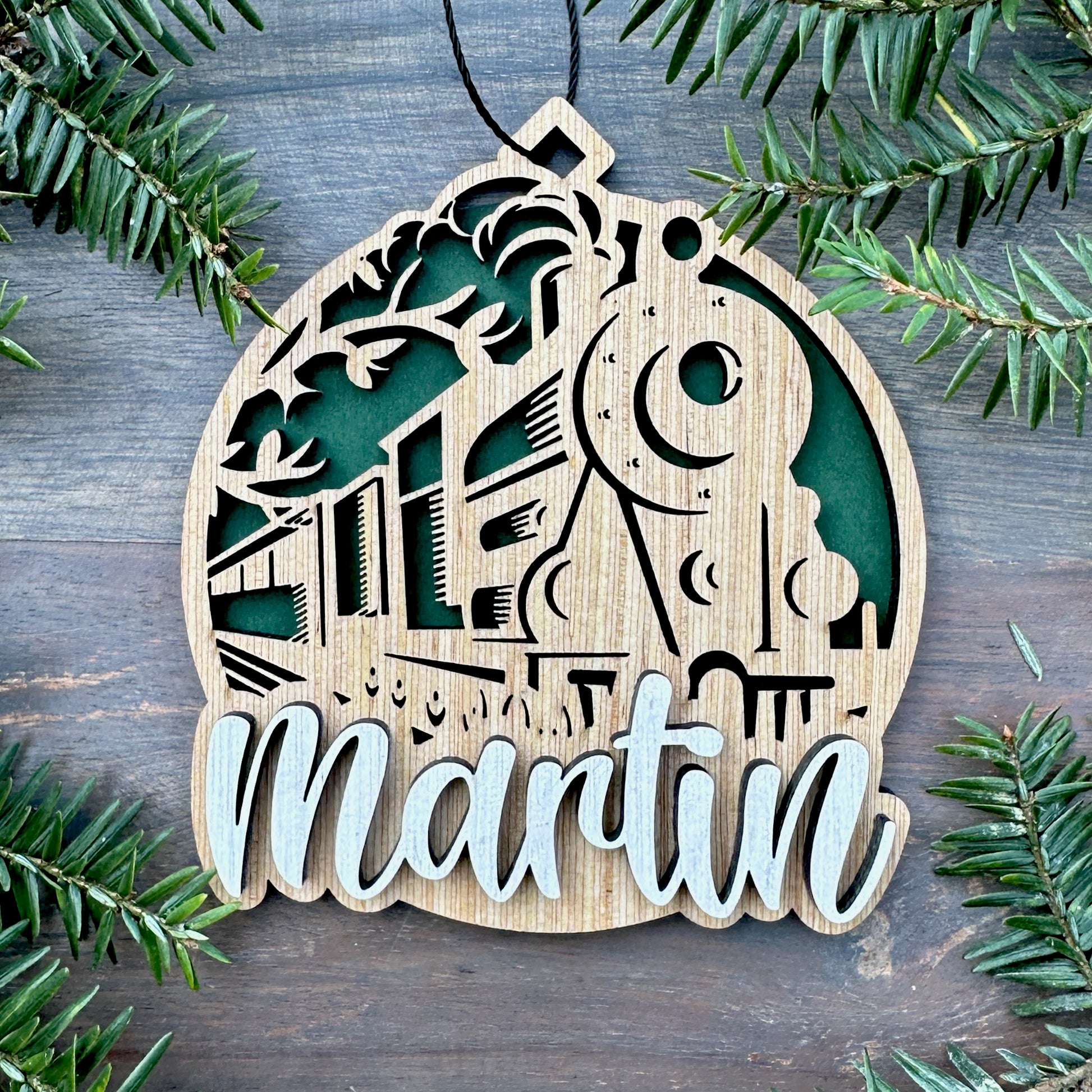 Make your Christmas or other holiday memorable with our personalized laser cut wooden ornaments. handcrafted with care from finished high quality 5mm wood with a colored 100# cardstock background. Black String Hanger included.