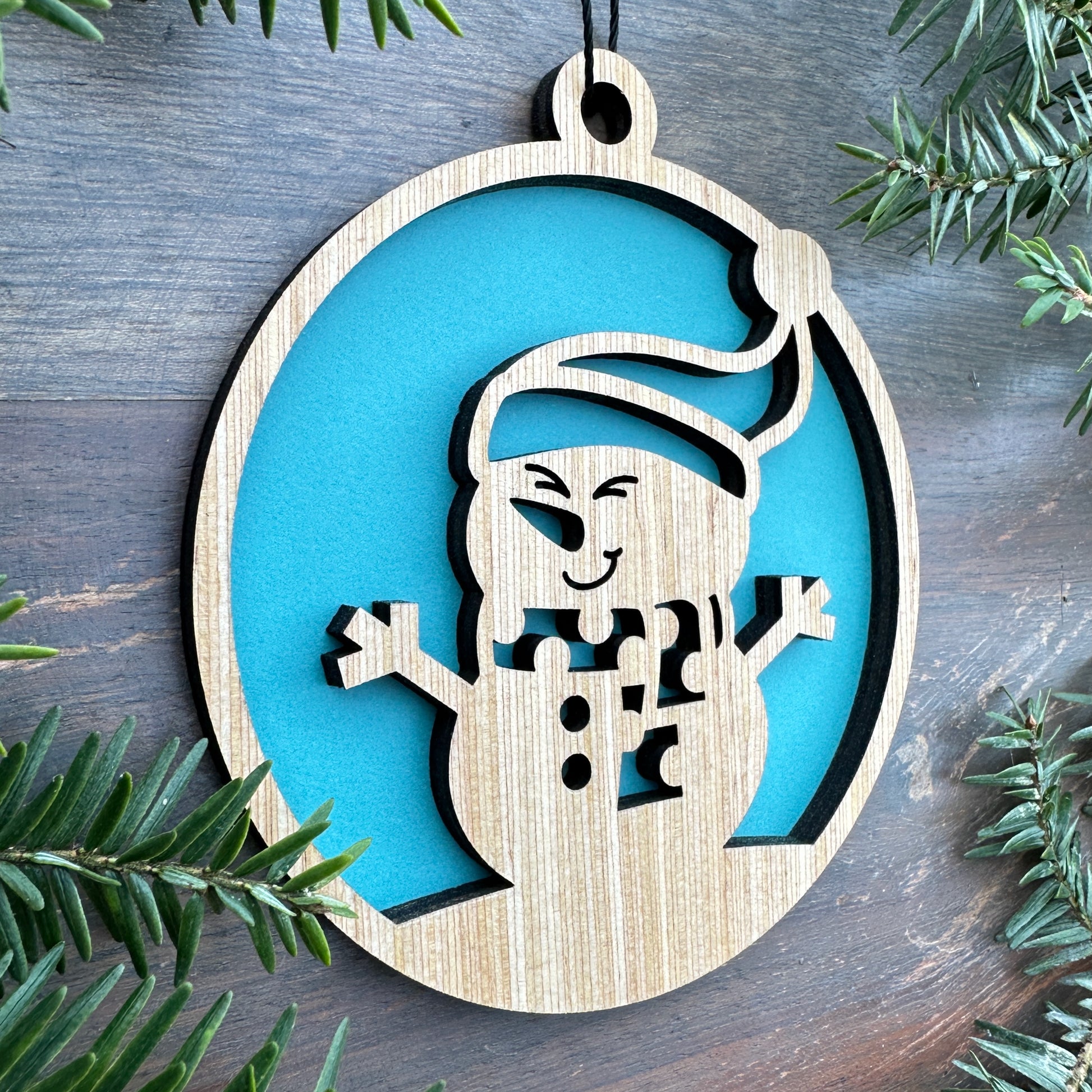 Make your Christmas or other holiday memorable with our laser cut wooden ornaments. Handcrafted with care from finished high quality 5mm wood with a colored 100# cardstock background. Black String Hanger included.